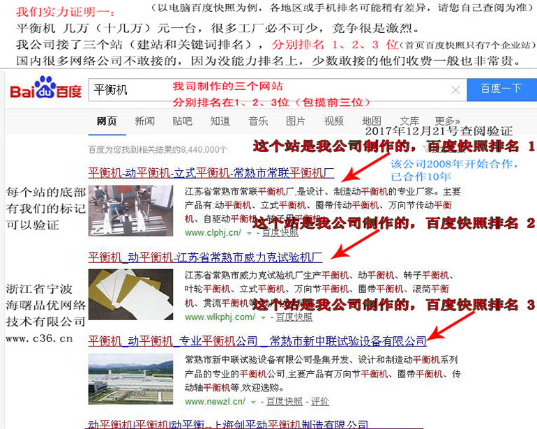 平衡機(jī) : 2018-05-23上線 2018-06-08排名第5頁 2018-07-01排名第30名 2018-08-15排名第11名 2018-08-26排名第7名 (注:平衡機(jī)一臺(tái)需要幾萬到10多萬元, 是難排名的關(guān)鍵詞,百度重點(diǎn)關(guān)照,因百度推廣的話,大概要60元一點(diǎn)擊)